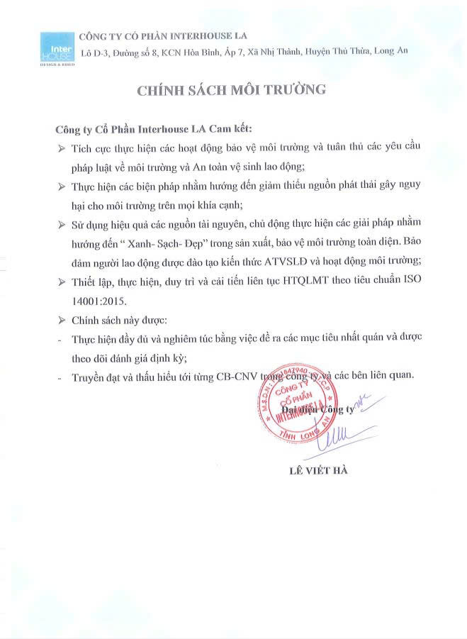 Chính sách môi trường của Interhouse LA